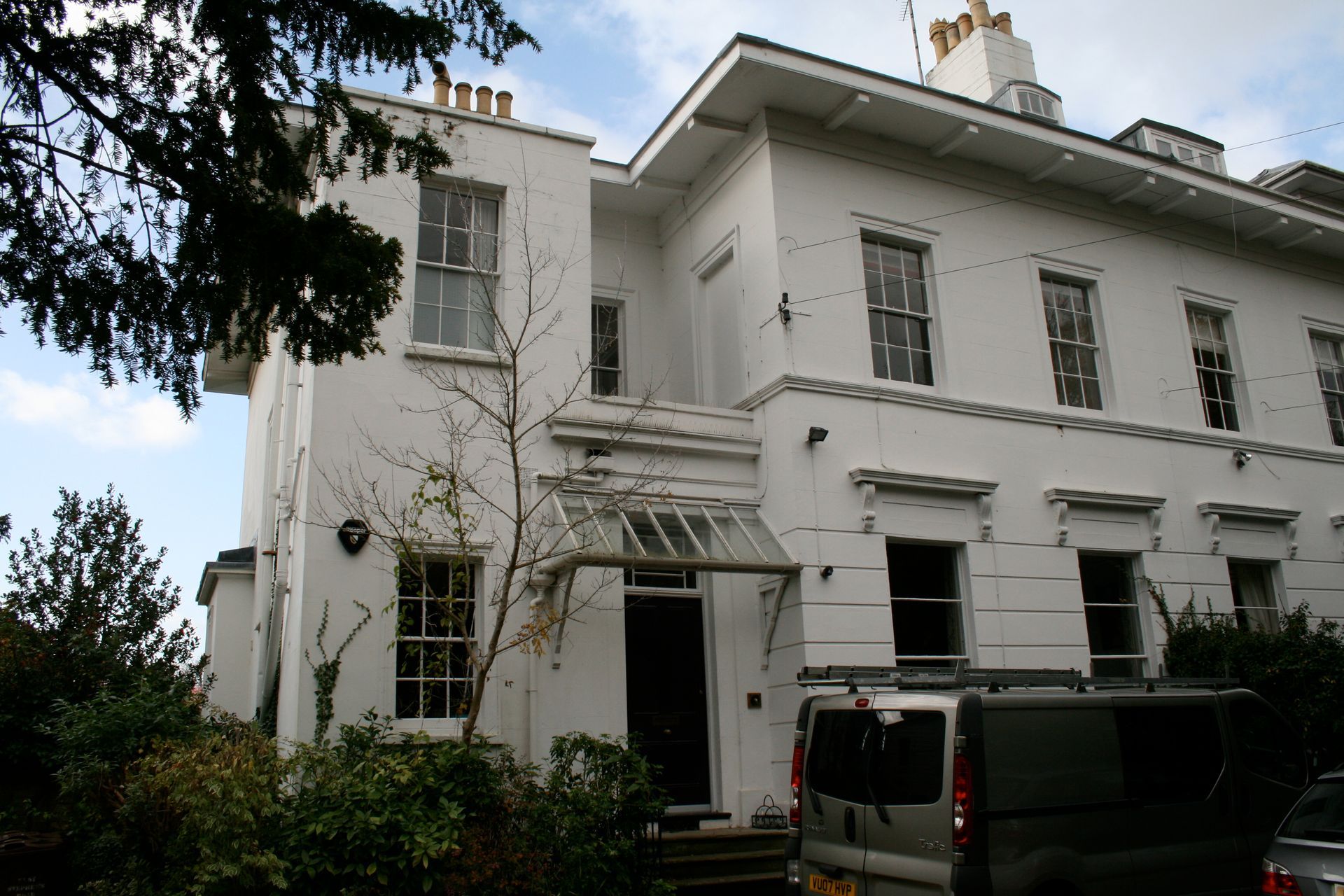 The property is a large semi-detached Grade II Listed villa on the edge of The Park in Cheltenham.