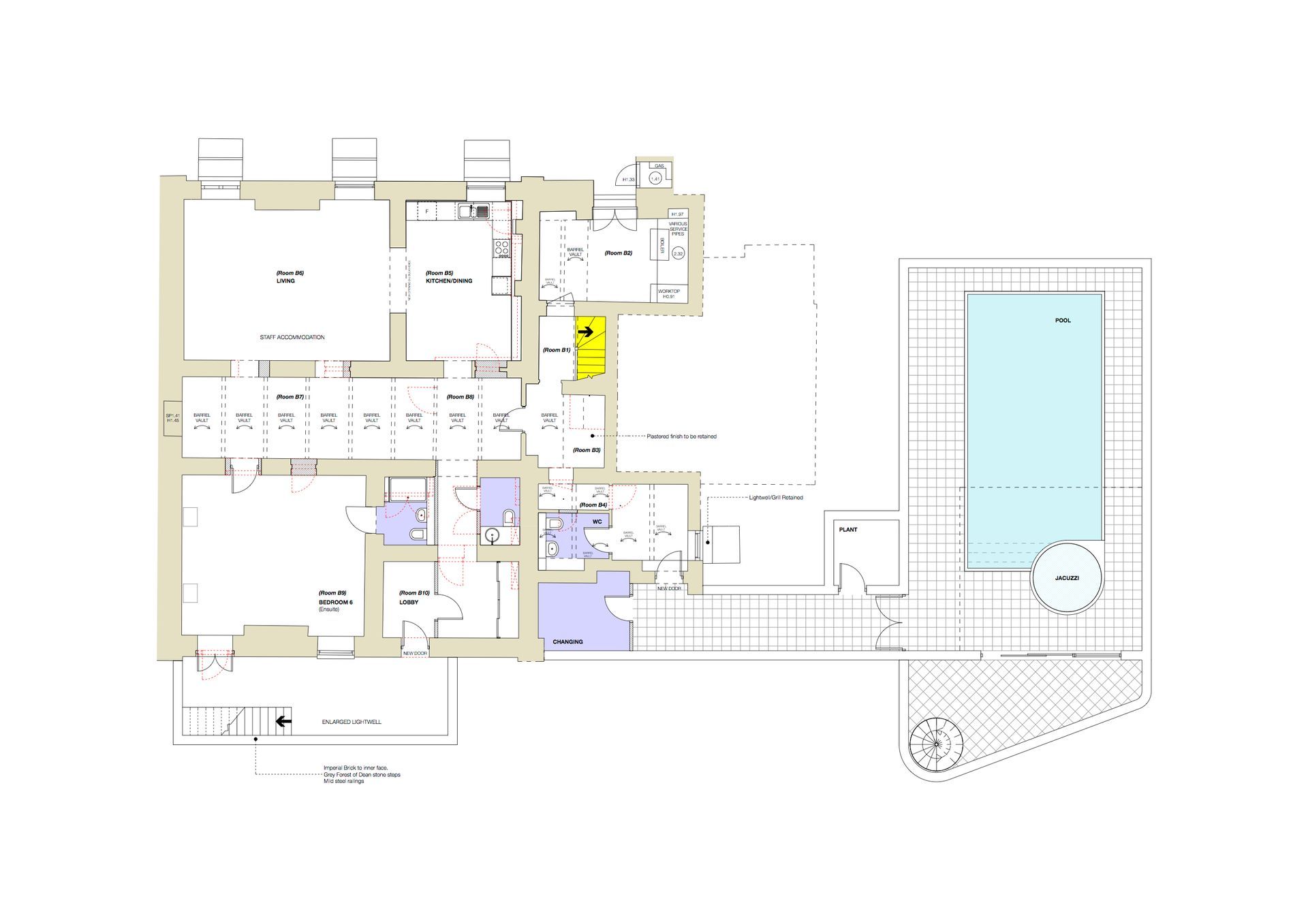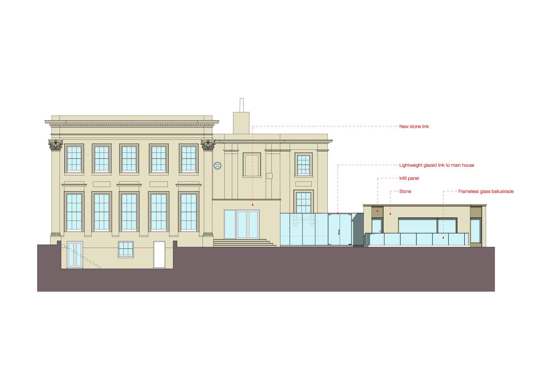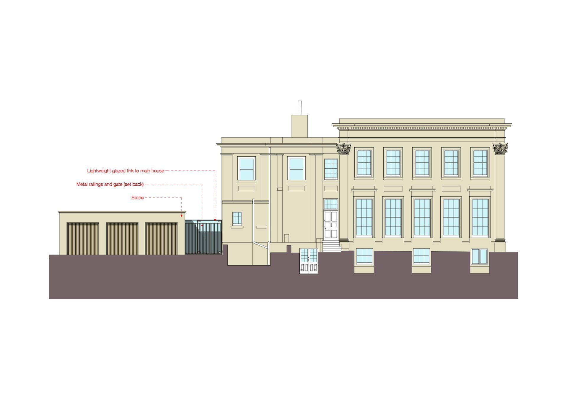 The proposal consists of a comprehensive refurbishment with a single storey triple garage and subterranean swimming pool.