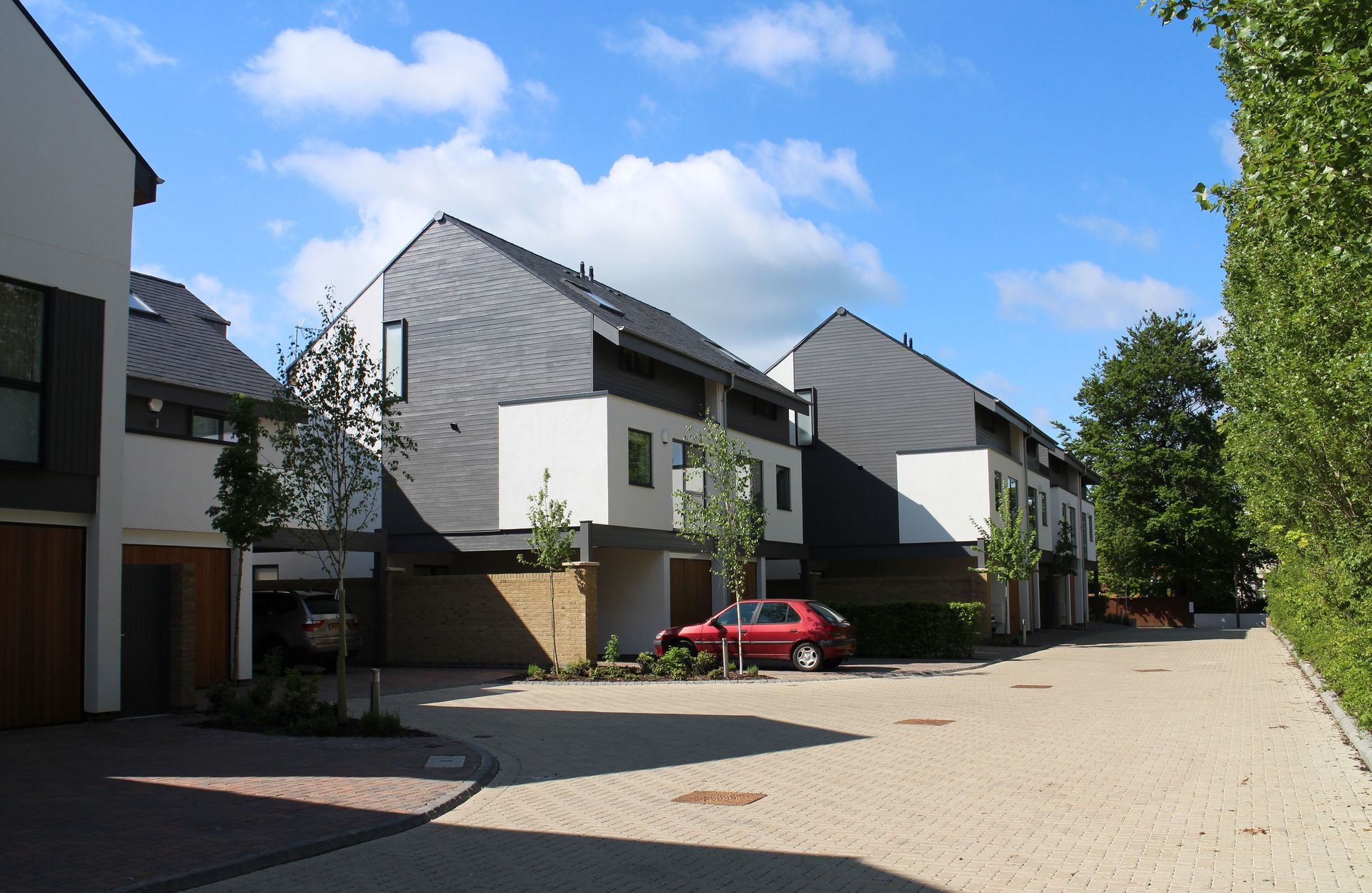 The solution is now a simple and elegant group of semi-detached and detached dwellings, all with garages, parking and gardens.