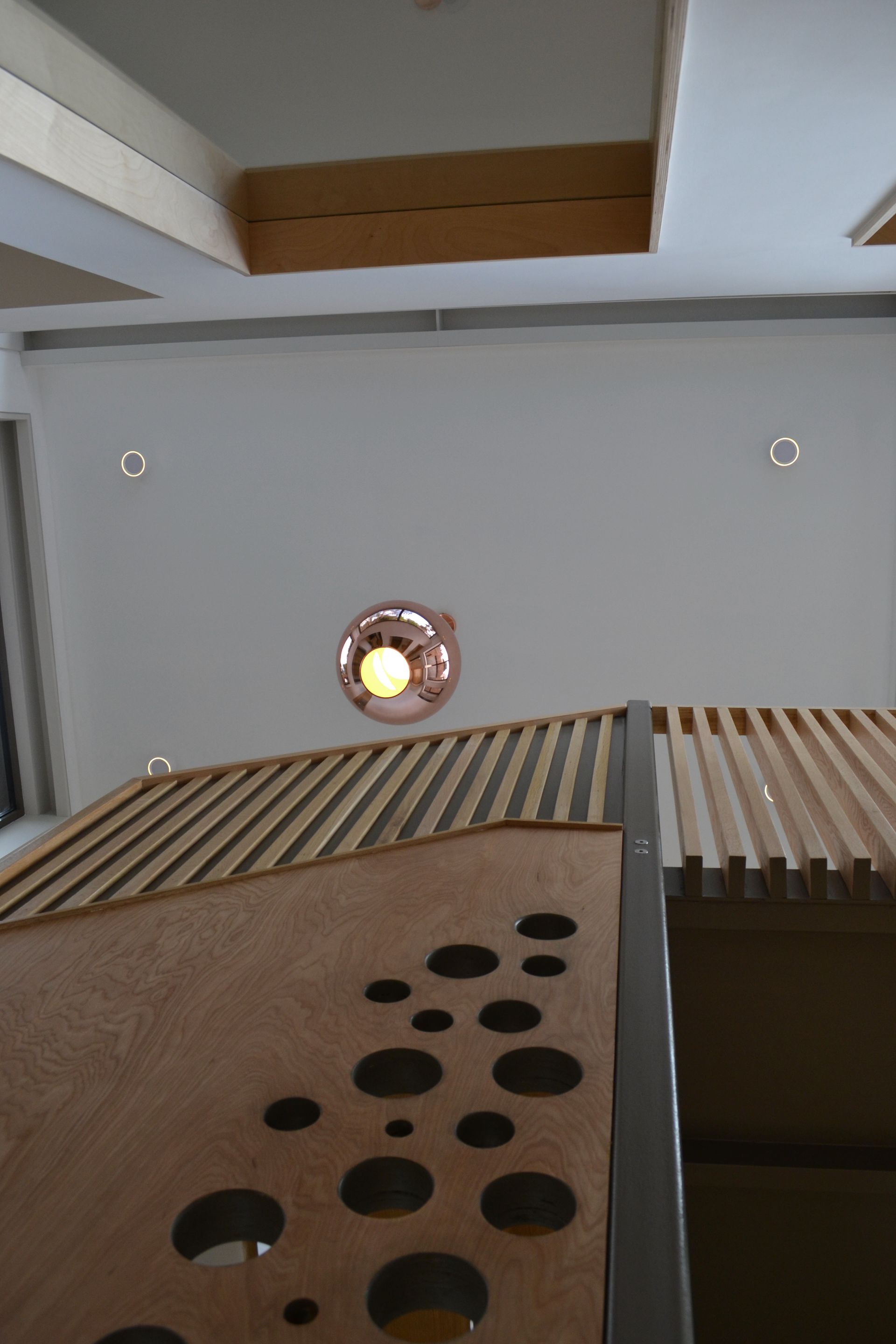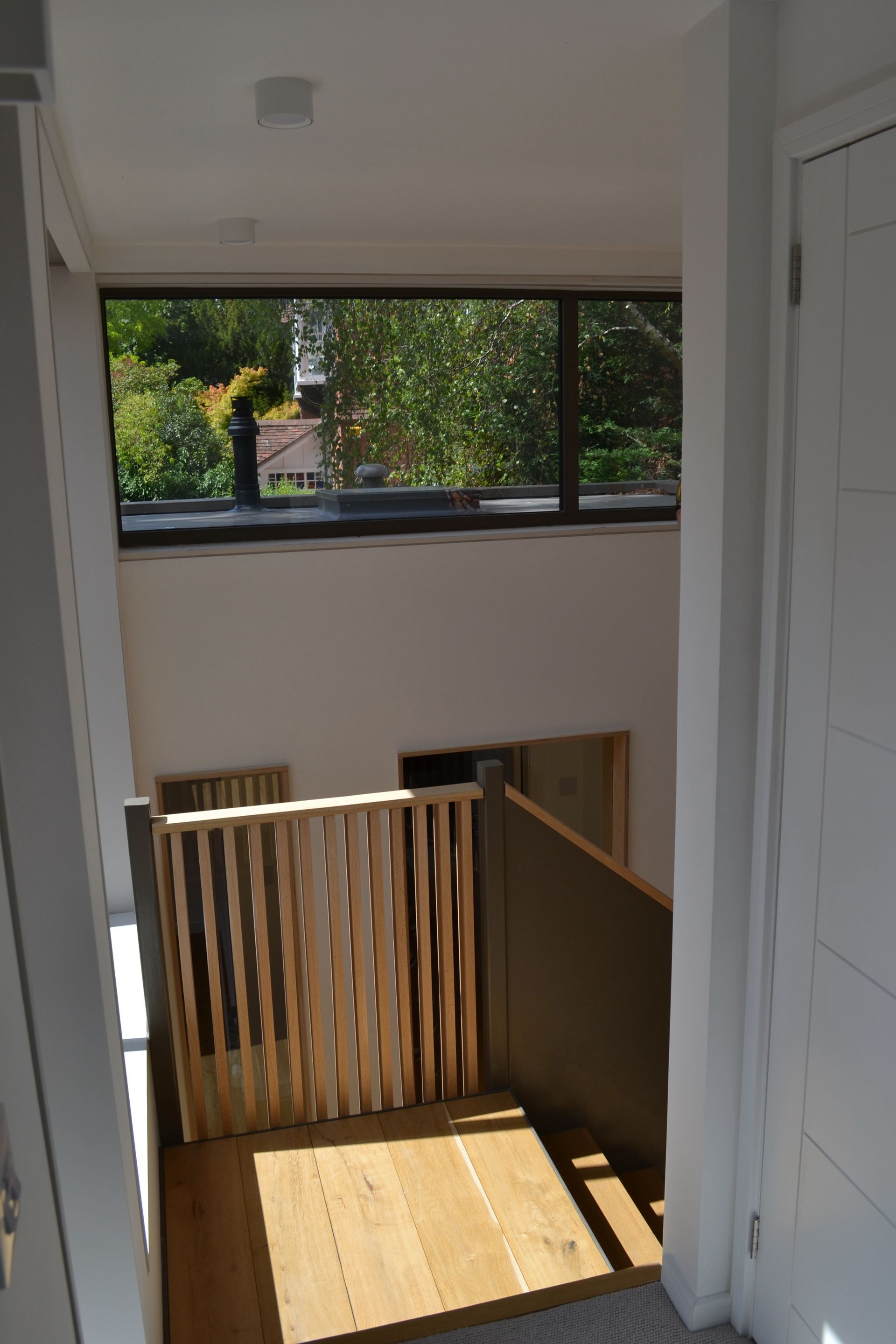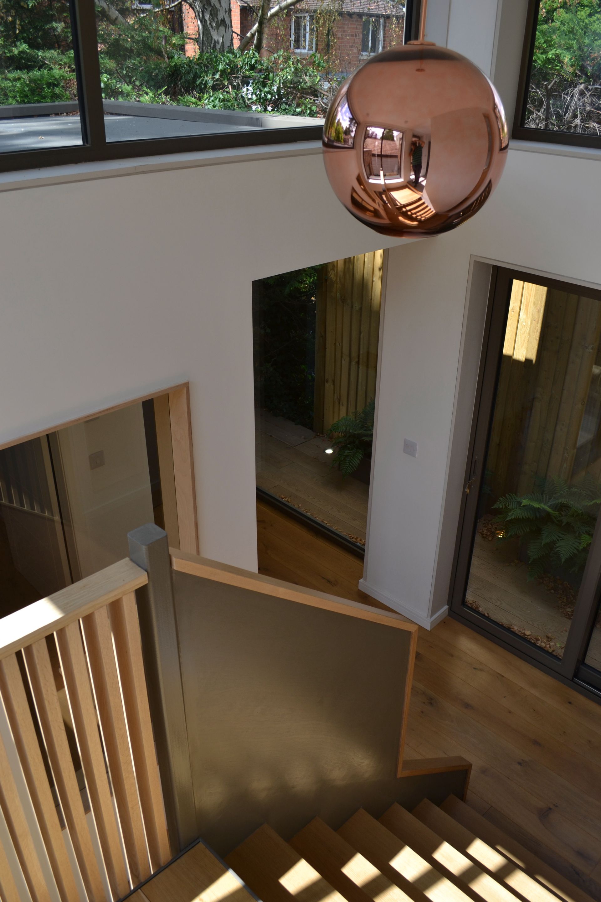 The strict constraints of the site including the need to keep the overall height the same as the adjacent garage, meant that the staircase plays a pivotal and important role in connecting the two halves of the house.