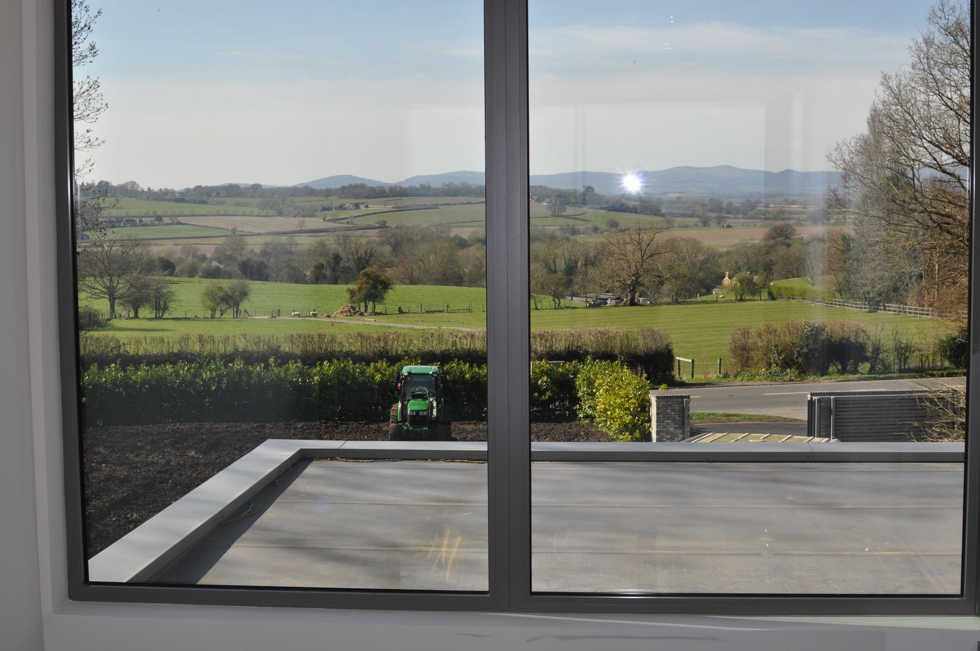 The simple pallet of materials enhance the modern clean lines and the large areas of glass allow far reaching views towards the Malvern Hills.