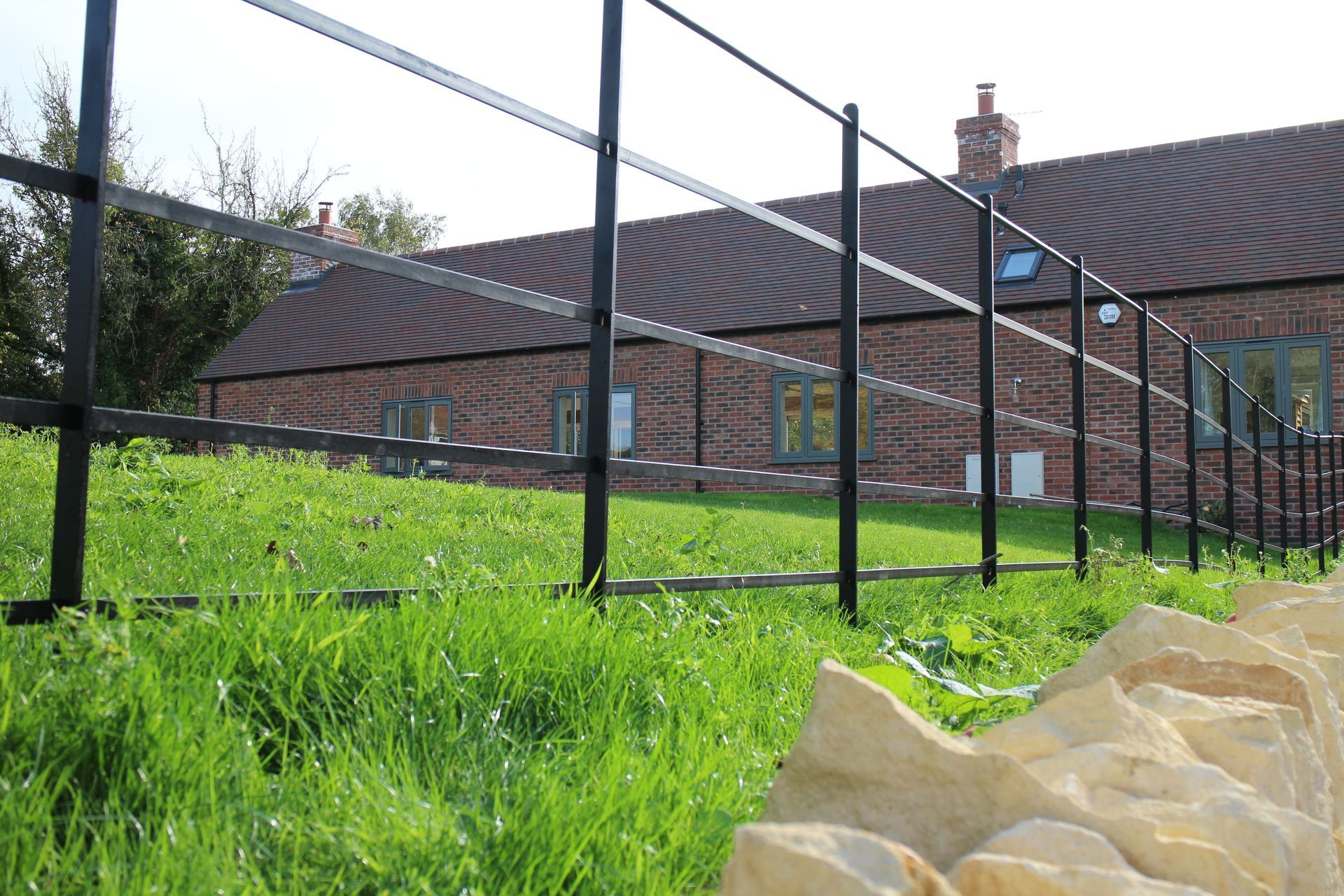 Heritage railings enclose the property and the simple pallet of materials compliment the rural setting.