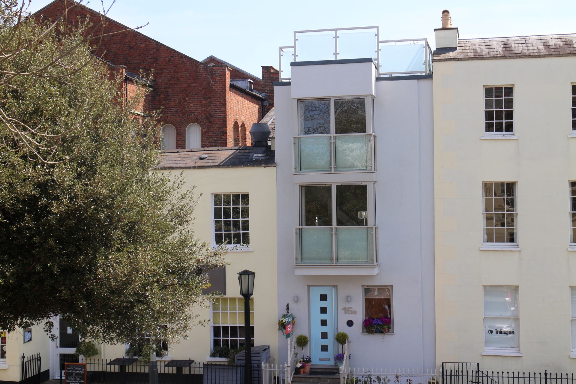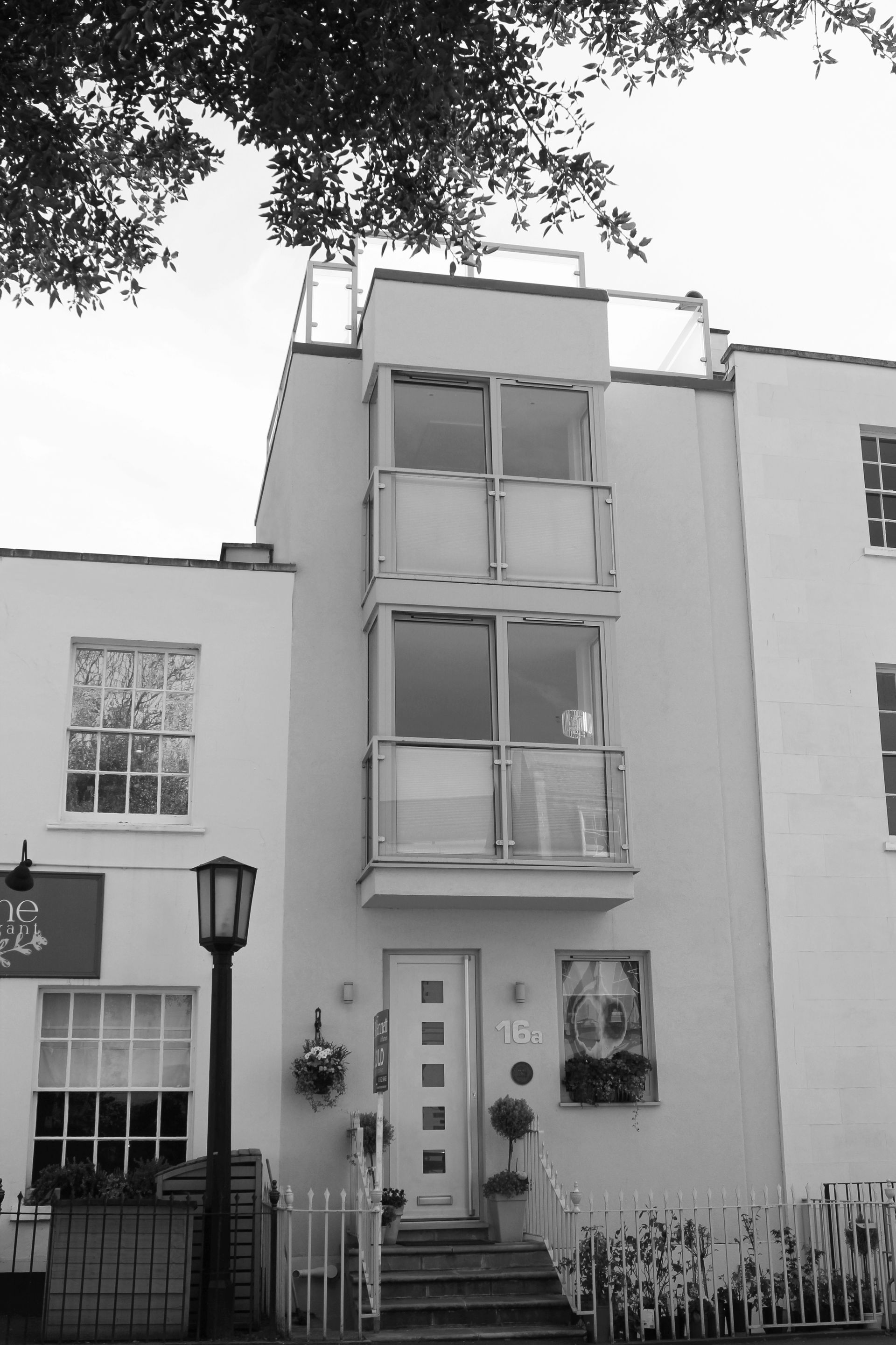 This private house in the centre of Cheltenham occupies a narrow site between a restaurant and terraced offices.